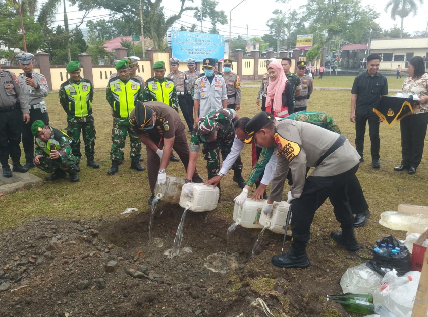 KOTAMOBAGU – Polres Kotamobagu sukses memusnahkan barang bukti berupa minuman beralkohol (Minol) dan Narkoba serta babuk narkotika lainnya pada Kamis 12 Maret 2026.